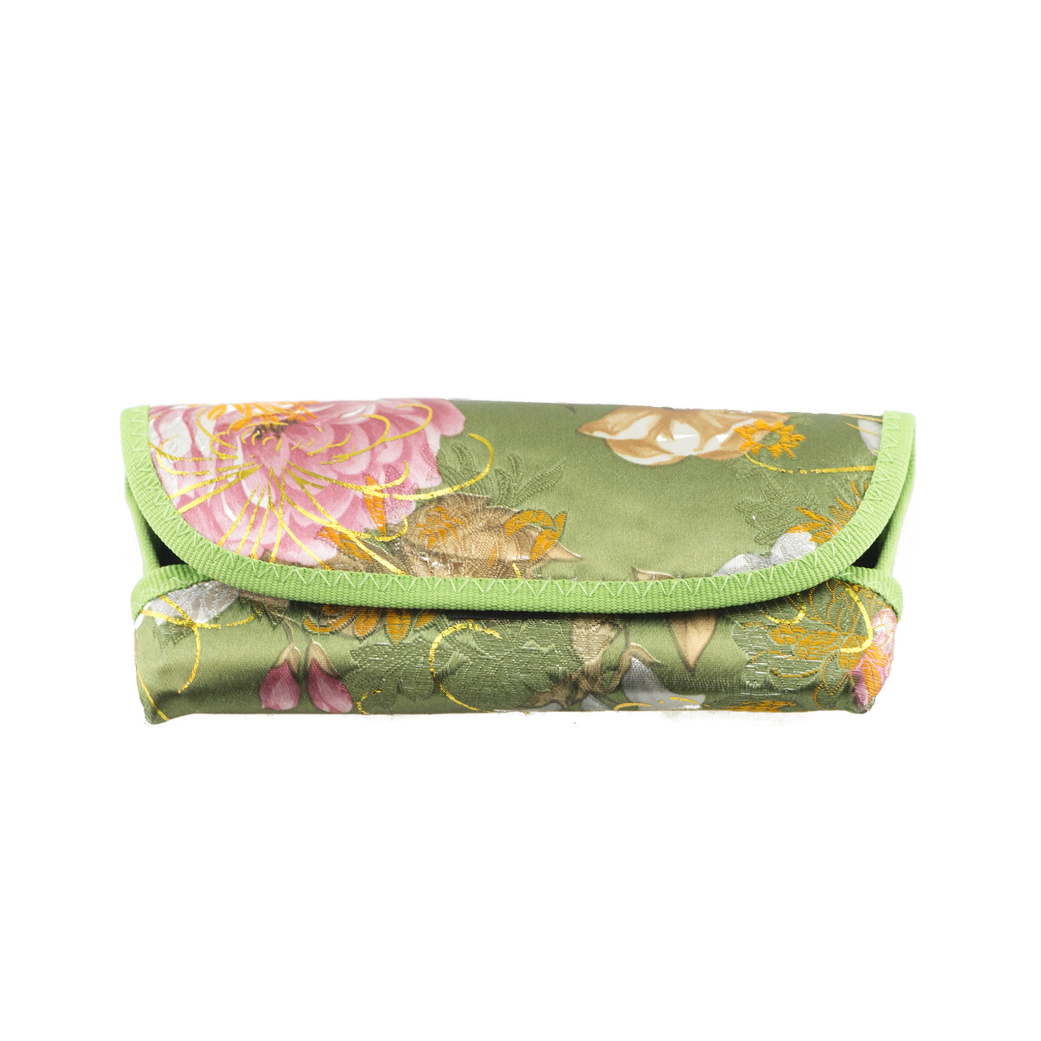 Asian inspired floral scroll prints with sheen hints in 4 colors. black, red, blue, green (shown in green)