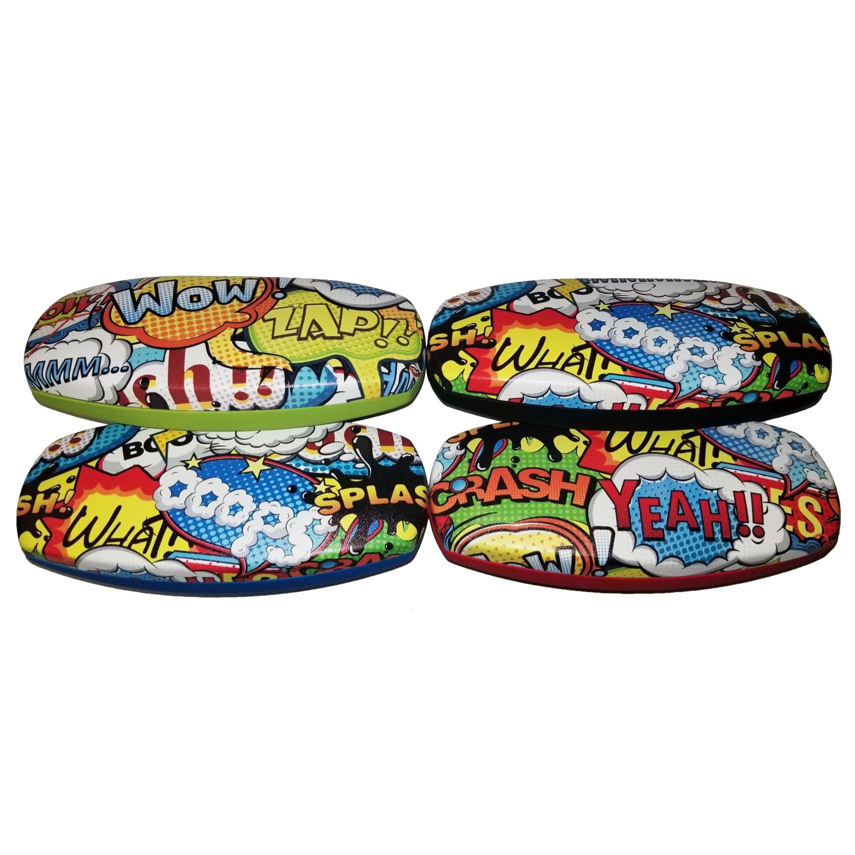 Comic case color assortment of green, black, red and blue.