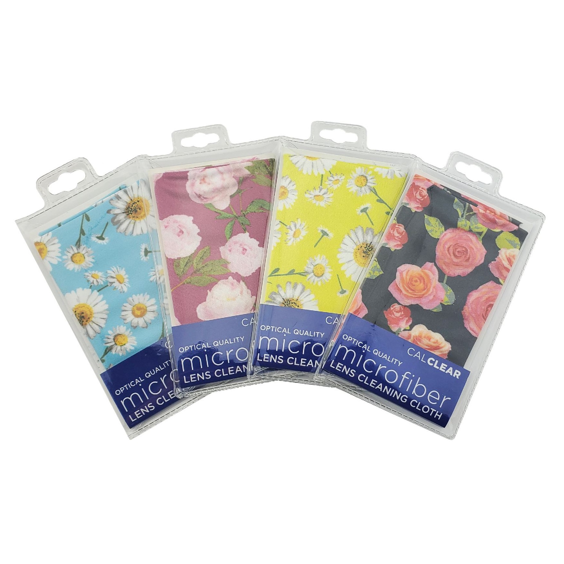 Floral cleaning cloths assortment of Black,Yellow ,Red and Blue. Pouch packed.