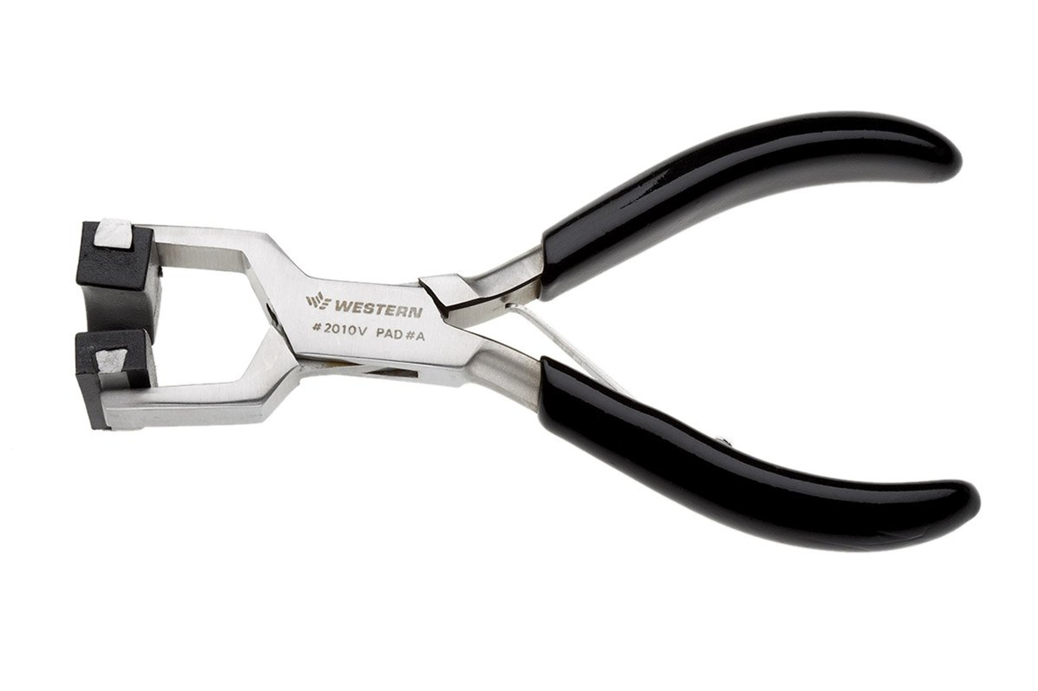 You have a lens that keeps popping out of the eyewire due to a mismatch between the base curve of the lens bevel and the eyewire. Using your fingers to reshape the eyewire is almost a guarantee that it will crimp. Instead, use this plier to gently and firmly reshape the eyewire curve. It is also safe to use on slightly warmed plastic frames. Our exclusive screw-free Delrin plastic pad eliminates the hassle of replacing screw-on type pads and the possibility of the metal screw marring the frame.