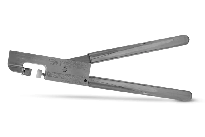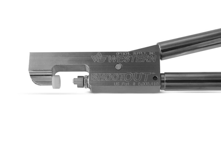 The Shootout Lens Marking Plier includes precision hand tool and custom die and lens stop. 8 5/8″ long. US Patent #6,006,410.